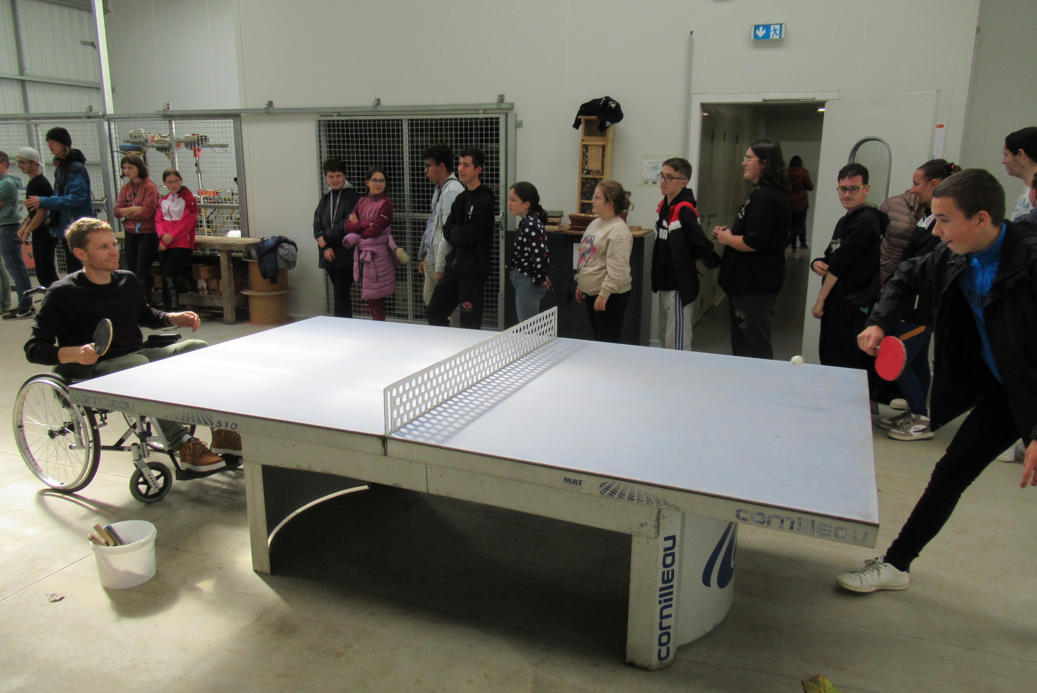 La seconde partie de l’après-midi a été consacré à des échanges de balles autour de table de ping-pong. Tout le monde (jeunes et encadrants) a eu la chance de se mesurer à Yann.