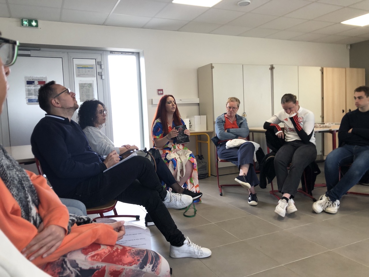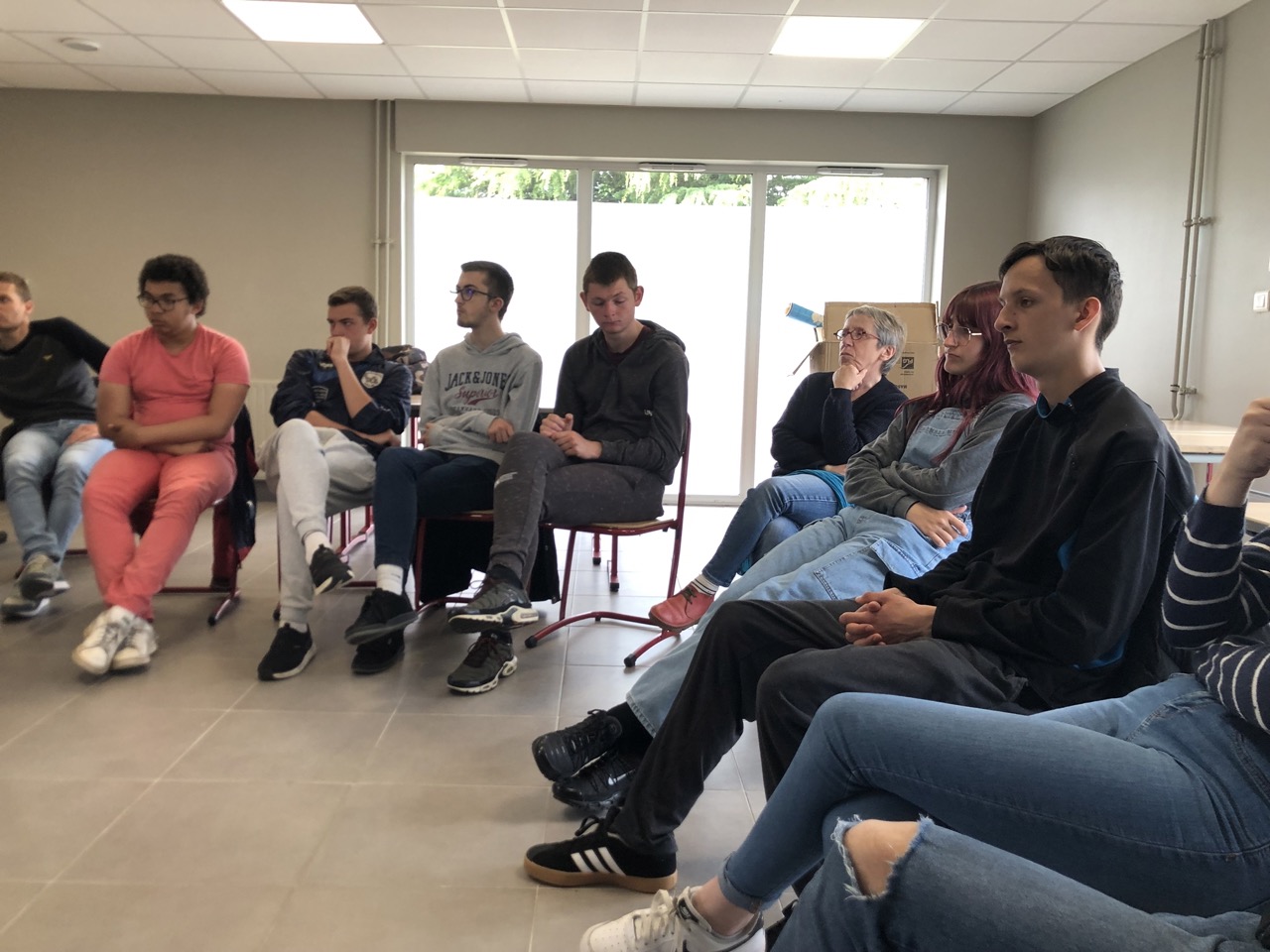 Il y avait avec nous un journaliste de Pontivy journal, Nadia, Sandrine la professeure documentaliste, Lisiane, Frédéric et le groupe du lycée du Gros chêne.