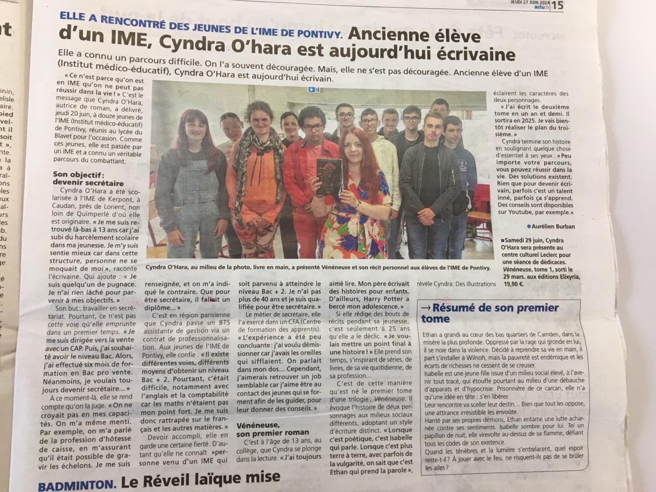 Elle nous a parlé de son livre et de son parcours. Par le passé, elle était à l’IME de Kerpont. Et aussi de son parcours en tant qu’écrivaine.